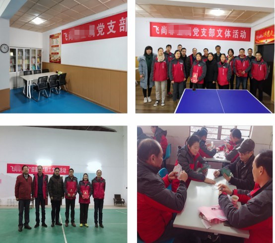 公司根據在“吐槽日”、“分享日”和“建議日”活動中,廣大黨員和員工的意見和建議,投資200多萬元,對公司的環境進行了大力的整治與改善,整體面貌煥然一新,還建起了黨群活動室、閱覽室、乒乓球室、羽毛球室等文化體育實施,設置了現代遠程教育站點,為豐富員工的業余文化生活提供了有利的條件。公司始終把思想政治工作與企業文化融合在一起,利用各種會議等形式,在廣大黨員和員工中進行愛國主義教育、職業道德教育,通過櫥窗宣傳欄和展板宣傳好人好事。創建了飛尚黨支部和非金屬共六個微信工作群,把黨的路線、方針、政策和現代化的管理理念傳達到黨員和員工當中,使黨員和員工能及時學習現代管理知識、掌握現代生產技術,提高業務能力。2018年以來,組織全體黨員及生產技術骨干到黃山太平、涇縣紅色小鎮、井岡山革命根據地及池州拓展基地,分別進行了為期2 -5天的黨建、團建及拓展培訓活動。每年組織1-2次豐富多彩的文體娛樂活動,豐富了員工的業余文化生活,增強了組織的凝聚力,推動了黨支部建設和企業生產經營工作的協調發展。