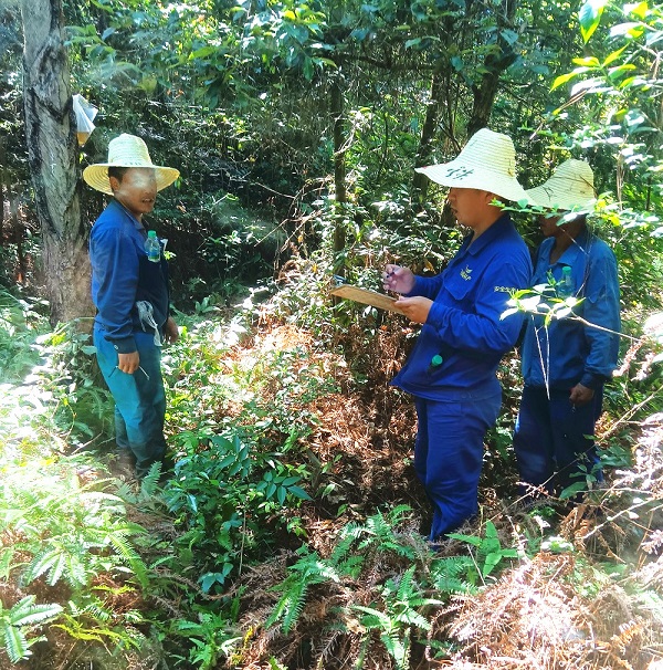 為了準確調查所規劃采伐面積林地中的林木立株數量、蓄積,為公司銷售、業務經營提供第一手準確資料,飛尚林產林調人員每天在晨曦中出發,一頂草帽、一個水壺、一把卷尺、一根量棍就是他們全部的標配,他們與蚊蟲和毒蛇為鄰,與烈日和高溫為伴。渴了,喝一口清泉;餓了,啃一口隨身攜帶的饅頭;累了,滿山的林木都是他們的靠背,滿地的石頭和樹樁就是他們的椅子。沒有人因天氣酷熱而畏懼,沒有人因一身汗水而退縮。有一次,泰和公司經理助理葉金火在帶隊進行林調時,有一個樹樁正巧深深地插進他腿上尚未痊愈的一個舊傷中,鉆心的痛,使他的臉瞬間扭曲。同事們見此情形,都勸他放下手上的工作,盡快下山治療。但他只稍微休息片刻后,很快就投入到了工作中,硬挺到工作結束,這時,只見他的一只褲腿全部被鮮血染紅。就這樣,憑著不懼酷熱、不懼辛苦的一股子干勁,一個個準確的林調基礎數據伴隨著汗水和辛勞而產生。